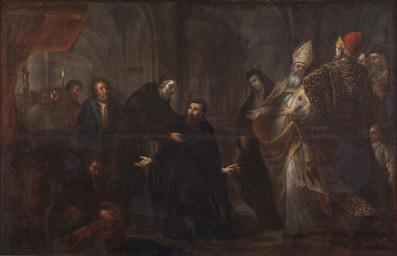 | Keywords: San Ambrosio imponiendo el hábito a San Agustín, de José García Hidalgo (Museo del Prado).jpg La obra representa a San Ambrosio uno de los Padres de la Iglesia imponiendo el hábito a San Agustín de Hipona otro de los Padres de la Iglesia circa 1663 1711 oil on canvas Size cm 323 211 Institution Museo del Prado Depositado en el Institution Gremi de Fabricants Sabadell https //www museodelprado es/coleccion/obra-de-arte/san-ambrosio-imponiendo-el-habito-a-san-agustin/758c1809-4a6c-4ff1-9c7c-c4468bb65165 accession number P05055 https //www museodelprado es/coleccion/obra-de-arte/san-ambrosio-imponiendo-el-habito-a-san-agustin/758c1809-4a6c-4ff1-9c7c-c4468bb65165 PD-old-100 Paintings of Saint Ambrose in Spain 17th-century paintings of Saint Ambrose 18th-century paintings of Saint Ambrose Paintings of Augustinus in Spain 17th-century paintings of Augustinus 18th-century paintings of Augustinus Paintings by José García Hidalgo in the Prado Museum 17th-century paintings in the Prado Museum 18th-century paintings in the Prado Museum Paintings in the Gremi de Fabricants Sabadell |