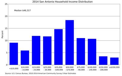 Keywords: San Antonio household income distribution.svg translate yes en Distribution of household income in San Antonio Texas Data from http //factfinder census gov/bkmk/table/1 0/en/ACS/14_5YR/DP03/1600000US4865000 US Census in 2014 inflation adjusted dollars 2016-06-04 own Delphi234 other versions cc-zero Income distribution in the United States San Antonio Texas |
