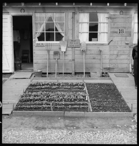 | Keywords: San Bruno, California. Close-up of barrack home with the carefully planned flower garden in foreground. - NARA - 537912.jpg Scope and content General notes 537912 Local identifier 210-G-C611 Department of the Interior War Relocation Authority 02/16/1944 - 06/30/1946 NARA-Author Lange Dorothea 1895-1965 Photographer 1372774 <br /> Still Picture Records Section Special Media Archives Services Division NWCS-S National Archives at College Park 8601 Adelphi Road College Park MD 20740-6001 1942-06-16 Record group Record Group 210 Records of the War Relocation Authority 1941 - 1989 Record group ARC 537 Central Photographic File of the War Relocation Authority compiled 1942 - 1945 Series ARC 536000 File unit File unit ARC Variant control numbers NAIL Control Number NWDNS-210-G-C611 Other versions <gallery> File San_Bruno _California _Close-up_of_barrack_home_with_the_carefully_planned_flower_garden_in_foreground _-_NARA_-_537912 tif tif File San_Bruno _California _Close-up_of_barrack_home_with_the_carefully_planned_flower_garden_in_foreground _-_NARA_-_537912 jpg jpg </gallery> NARA-cooperation PD-USGov Dorothea Lange Tanforan Assembly Center |