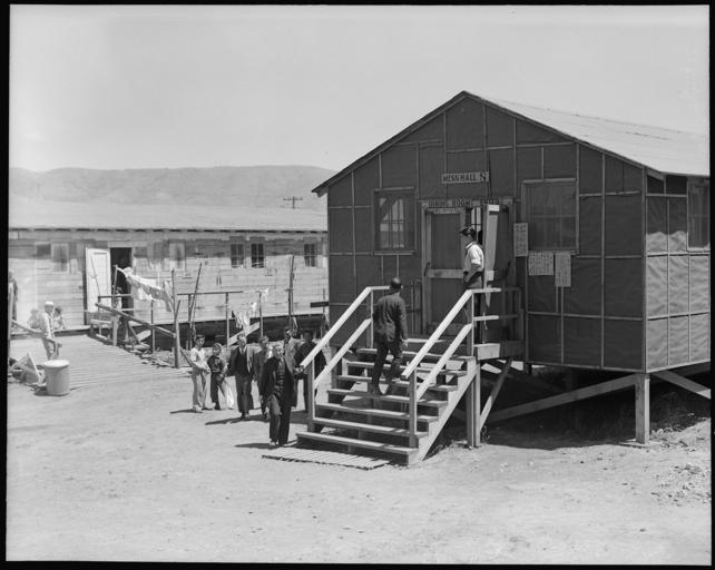 | Keywords: San Bruno, California. Early comers to a mid -day meal. There are eighteen such mess halls which, . . . - NARA - 537921.jpg Scope and content The full caption for this photograph reads San Bruno California Early comers to a mid -day meal There are eighteen such mess halls which together accomodate approximately 8 000 persons for three meals a day Such mess halls are manned and operated entirely by Japanese evacuees General notes 537921 Local identifier 210-G-C621 Department of the Interior War Relocation Authority 02/16/1944 - 06/30/1946 NARA-Author Lange Dorothea 1895-1965 Photographer 1372774 <br /> Still Picture Records Section Special Media Archives Services Division NWCS-S National Archives at College Park 8601 Adelphi Road College Park MD 20740-6001 1942-06-16 Record group Record Group 210 Records of the War Relocation Authority 1941 - 1989 Record group ARC 537 Central Photographic File of the War Relocation Authority compiled 1942 - 1945 Series ARC 536000 File unit File unit ARC Variant control numbers NAIL Control Number NWDNS-210-G-C621 Other versions <gallery> File San_Bruno _California _Early_comers_to_a_mid_-day_meal _There_are_eighteen_such_mess_halls_which _ _ _ _-_NARA_-_537921 tif tif File San_Bruno _California _Early_comers_to_a_mid_-day_meal _There_are_eighteen_such_mess_halls_which _ _ _ _-_NARA_-_537921 jpg jpg </gallery> NARA-cooperation PD-USGov Dorothea Lange Mess halls |