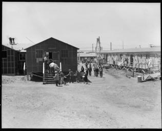 | Keywords: San Bruno, California. Supper time, Meal times are the big events of the day at the assembly cente . . . - NARA - 537953.tif Scope and content The full caption for this photograph reads San Bruno California Supper time Meal times are the big events of the day at the assembly centers This is a line-up of evacuees waiting for the B shift at 5 45 pm They carry with them their own dishes and cutlery in bags to protect them from the dust They themselves wash their own dishes after each meal since the facilities in the mess halls proved inadequate Most of the residents prefer this shift because sometimes they get second helpings But the groups are rotated each week There are eighteen mess halls at this camp that accomodate together 8 ooo persons three times a day All meals are prepared and served by evacuees General notes 537953 Local identifier 210-G-C655 Department of the Interior War Relocation Authority 02/16/1944 - 06/30/1946 NARA-Author Lange Dorothea 1895-1965 Photographer 1372774 <br /> Still Picture Records Section Special Media Archives Services Division NWCS-S National Archives at College Park 8601 Adelphi Road College Park MD 20740-6001 1942-06-16 Record group Record Group 210 Records of the War Relocation Authority 1941 - 1989 Record group ARC 537 Central Photographic File of the War Relocation Authority compiled 1942 - 1945 Series ARC 536000 File unit File unit ARC Variant control numbers NAIL Control Number NWDNS-210-G-C655 yes Other versions <gallery> File San_Bruno _California _Supper_time _Meal_times_are_the_big_events_of_the_day_at_the_assembly_cente_ _ _ _-_NARA_-_537953 tif tif File San_Bruno _California _Supper_time _Meal_times_are_the_big_events_of_the_day_at_the_assembly_cente_ _ _ _-_NARA_-_537953 jpg jpg </gallery> NARA-cooperation PD-USGov Dorothea Lange Mess halls NARA TIF images with categorized JPGs |