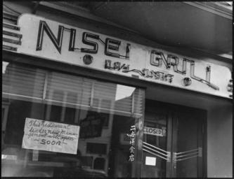 | Keywords: San Francisco, California. This restaurant, named "Nisei" after second- generation children born in . . . - NARA - 536045.jpg Scope and content The full caption for this photograph reads San Francisco California This restaurant named Nisei after second- generation children born in this country to Japanese immigrants was closed prior to evacuation of residents of Japanese ancestry; and according to sign in the window was scheduled to re- open under new management Evacuees will be housed at War Relocation Authority centers for the duration General notes 536045 Local identifier 210-G-A68 Department of the Interior War Relocation Authority 02/16/1944 - 06/30/1946 NARA-Author Lange Dorothea 1895-1965 Photographer 1372774 <br /> Still Picture Records Section Special Media Archives Services Division NWCS-S National Archives at College Park 8601 Adelphi Road College Park MD 20740-6001 1942-04-07 Record group Record Group 210 Records of the War Relocation Authority 1941 - 1989 Record group ARC 537 Central Photographic File of the War Relocation Authority compiled 1942 - 1945 Series ARC 536000 File unit File unit ARC Variant control numbers NAIL Control Number NWDNS-210-G-A68 Other versions <gallery> File San_Francisco _California _This_restaurant _named_ Nisei _after_second-_generation_children_born_in_ _ _ _-_NARA_-_536045 tif tif File San_Francisco _California _This_restaurant _named_ Nisei _after_second-_generation_children_born_in_ _ _ _-_NARA_-_536045 jpg jpg </gallery> NARA-cooperation PD-USGov Dorothea Lange Japanese American internment processing in San Francisco Restaurants in San Francisco Restaurant signs in San Francisco Japanese writing in the United States |