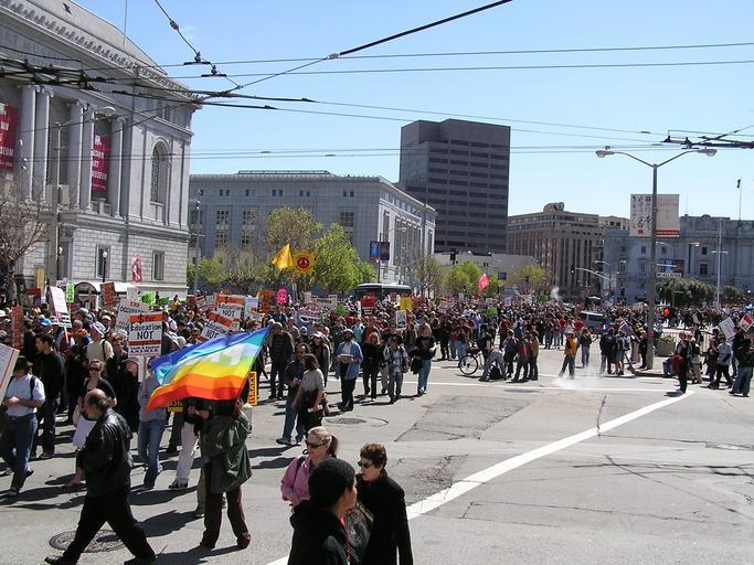 Keywords: San francisco war protest march.jpg Protesters at the beginning of the march during war protests in San Francisco CA 2006 2006-03-18 own assumed Muhgcee~commonswiki Demonstrations and protests in San Francisco California 2006 in San Francisco |