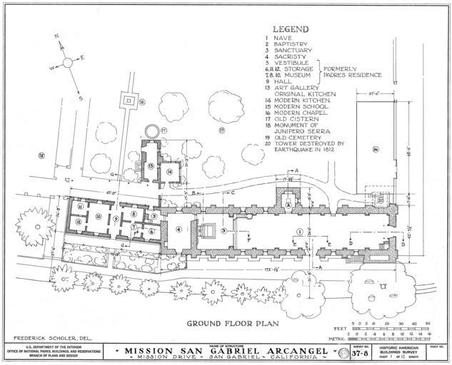 | Keywords: San gabriel arcangel 00001a.png Mission San Gabriel Arcangel San Gabriel California USA Architectural sketch Floor plan Hisoric American Buildings Survey http //memory loc gov/cgi-bin/ampage collId hhsheet action browse fileName ca/ca0200/ca0291/sheet/browse db recNum 0 itemLink D hh 4 /temp/~ammem_Pzl7 linkText -1 title2 Mission 20San 20Gabriel 20Arcangel 20West 20Mission 20Drive 20 26 20Junipero 20Serra 20Street 20San 20Gabriel 20Los 20Angeles 20County 20CA displayType 1 maxCols 2 HABS sketch PD-USGov-Interior-HABS Mission San Gabriel Arcángel Historic American Buildings Survey in Los Angeles California |