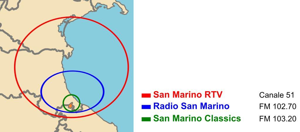 Keywords: San Marino RTV Frequences.svg en Frequences of Radio and Television of San Marino es Frecuencias de Radio y Televisión San Marino own Jlechuga86 12-11-2010 GFDL cc-by-sa-3 0 San Marino RTV