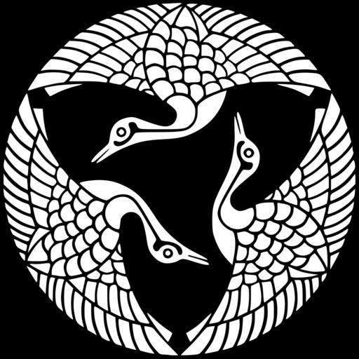 Keywords: Sanba Tobi zuru inverted.svg 三羽飛鶴 紋(染 ) own 2010-05-08 file created on Adobe Illustrator and Photoshop Tsuru mon Japanese crests of crane Yakusha mon Japanese crests of Kabuki actors' Triskelion SVG Japanese family crests Circled mon