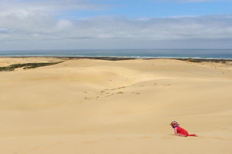 Keywords: sand dune baby crawl child small child infant curiosity red small nature water summer sea horizon sand summer sea holiday motion recording dunes new zealand north island cape reinga