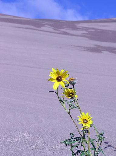 Keywords: sand dunes park national preserve landscape flower plant blooming petals nature ripples wind texture shadows white hot scenic mosca colorado usa