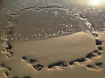 Keywords: sand footprints water beach sea ocean coast footstep seaside relaxation living lifestyle