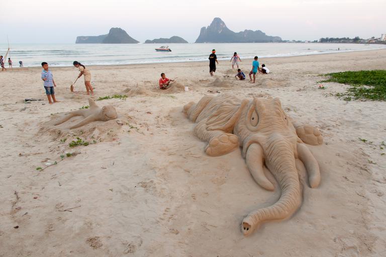 Keywords: sand sculpture molding sand kids funny sandy beach elephant thailand learning prachuap khiri khan