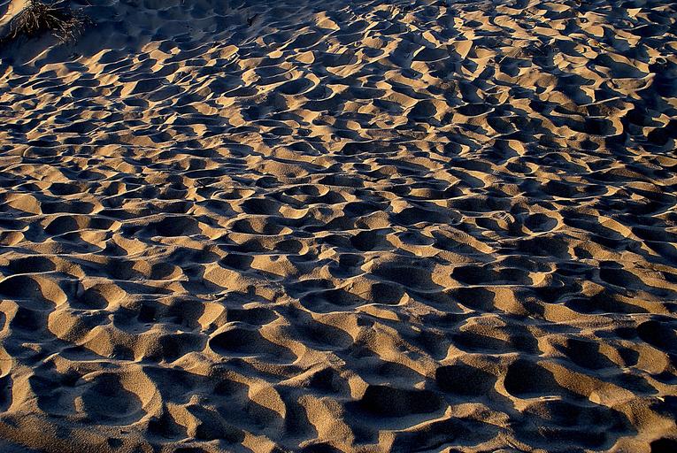 Keywords: sand shadows invoice footprints lighting afternoon warm light on the beach the baltic sea shapes grains footprints in the sand sunset aura west sun summer
