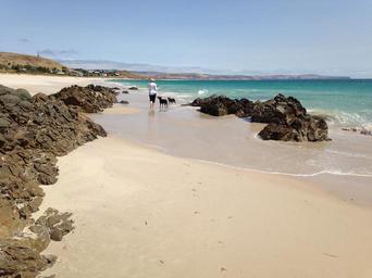 | Keywords: sandy beach seaside blue sky white sand nature paradise ocean sea waves holiday promenade dogs woman pebble rocks shells stones algae tide wild coast island romantic mountains hills white clouds lande seascape maritime tourism relaxation rest landscape horizon |