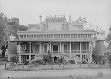 | Keywords: SanFranciscoPlantationHouse1938.jpg 74002186 Louisiana San Francisco Plantation House on River Road near Convent Louisiana in 1938 Notes Pair of cisterns on either side of main building Photo by Russell Lee for Farm Security Administration 1938 Via Library of Congress website at http //hdl loc gov/loc pnp/fsa 8b20736 Converted from TIFF to jpg and border cropped before uploading 1938-10 Creator Russell Lee PD-USGov San Francisco Plantation Russell Lee Cisterns in Louisiana 1938 in Louisiana |