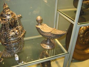 Keywords: Sangiobattcavriglia (21).JPG Thurible and incense-boat embossed silver XVIII century In the cap the Family Burzagli coat of arms and FB the letters of Francesco Burzagli parish priest from 1749 to 1815 - Pieve di San Giovanni Battista Cavriglia own 2008-11-16 Emiliano Burzagli Own work all rights released Public domain Pieve di San Giovanni Battista Cavriglia Incense boats |