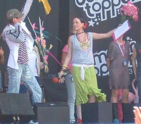 Keywords: SannaBråding2005.jpg Swedish actress and radio host Sanna Bråding at Gatufesten in Sundsvall Sweden Among the partly obscured people can be found radio host Anton Berg left front pop singer-songwriter Robyn left back and BWO keyboardist Marina Schiptjenko right back Self-made work Fujifilm FinePix A303 camera 2005-07-09 Hans Lindqvist PD-Sweden-self Gatufesten 2005 in Stenstan Sanna Bråding |