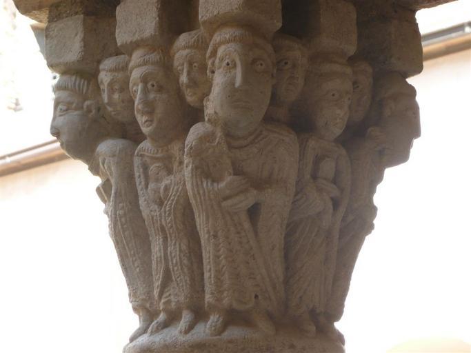 Keywords: Sant Pere de Rodes07.jpg Monestir de Sant Pere de Rodes el Port de la Selva Alt Empordà Catalunya Capitell dels monjos al claustre superior realització pròpia / self-made 2008 Tantarantana PD-self Monestir de Sant Pere de Rodes Romanesque capitals in Catalonia |