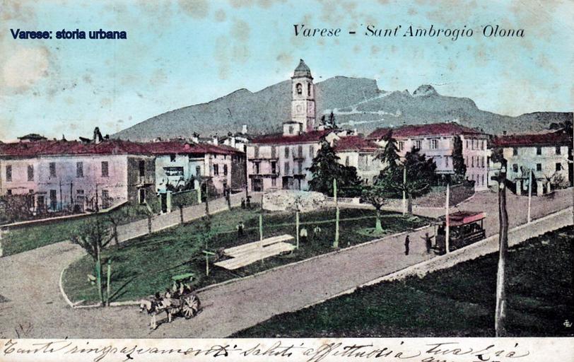 Keywords: Versione colorata. L'attuale piazza Milite Ignoto, al centro il campanile della vecchia chiesa di Sant'Ambrogio. varese tram sambrogioolona