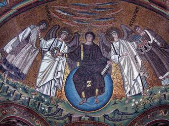| Keywords: SanVitale09.jpg Cupola of the choir decorated with byzantine mosaics finished till 547 Christ offers the martyr crown to San Vitale while an angel offers a model of the church to bishop Ecclesius; Basilica of San Vitale in Ravenn Italy Abside della basilica di San Vitale a Ravenna decorata con mosaici bizantini compiuti entro il 547 Cristo offre la corona di martire a San Vitale mentre un angelo offre un modello di chiesa al vescovo Ecclesio Апсида базилики Св Виталия в Равенне ук ашенная византийскими мозаиками закончены к 547 Х истос п едлагает ко ону мученика Св Виталию в то в емя как ангел п едлагает модель це кви епископу Экклесию Апсида базиліки Св Віталія у Равенні п ик ашена візантійськими мозаїками заве шені до 547 Х истос п опонує ко ону мученика Св Віталію в той час як ангел п опонує модель це кви єпископу Екклесію own 2006-04-05 Georges Jansoone PD-Art GFDL Cc-by-sa-3 0-migrated Cc-by-2 5 San Vitale Ravenna - Mosaics - Apse Apses in Ravenna Vitalis of Milan Ravenna Mosaics of angels Ravenna Mosaics of Christ Pantocrator Ecclesius bishop Paleochristian art |