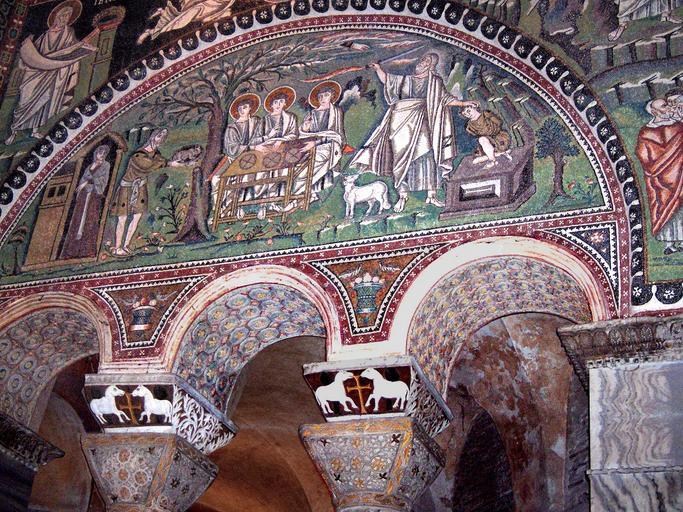 | Keywords: SanVitale20 adjusted.jpg Abraham entertaining three angels; sacrifice of Isaac; Basilica of San Vitale in Ravenna Italy Wikipedia Commons 2006-04-05 Georges Jansoone PD-Art SanVitale20 jpg original NOTE Present file has been digitally adjusted to darken the tone and strengthen contrast in the lower half of the picture to counter the glare from flash and back lighting on rear vault compartment Changes are visible at high resolution Amandajm GFDL Cc-by-sa-3 0-migrated Cc-by-2 5 Mosaics of angels Italy Mosaics of Moses San Vitale Ravenna - Mosaics Angels Abraham and three angels Mosaics of Sacrifice of Isaac Hand of God |