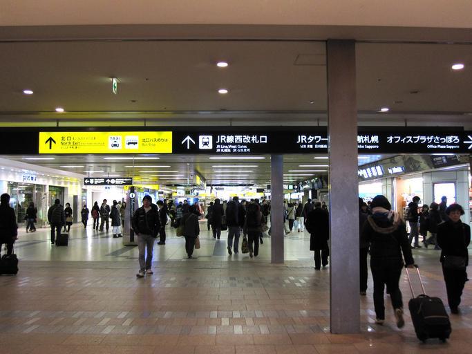 Keywords: Sapporo station west concourse.jpg ja 幌駅西コンコース(JR北海道函館 線) 2012-03-26 own Ninosan cc-zero Interior of Sapporo Station Uploaded with UploadWizard