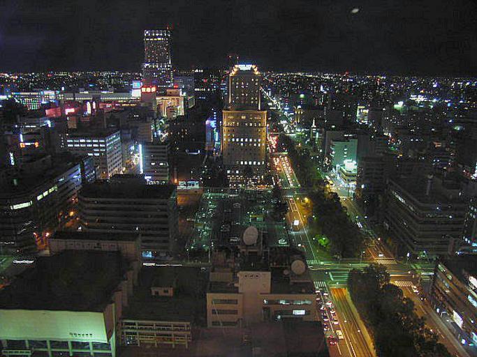 | Keywords: SapporoNight2004-11.jpg Night of Sapporo Japan from Sapporo TV Tower Night of the center of Sapporo Place - Odori Park Chuo-ku Sapporo Hokkaido Japan From Sapporo TV Tower toward north Format - JPEG 640x480 pixel 24bit colors Center high buildings are two Hotels The far left building is JR Tower and the lights of the Sappro Station make a horizontal line from its left Sosei River Sosei Gawa and The Soseigawa Road run from this right side Noche del centro de Sapporo Lugar - Parque Odori Chuo-ku Sapporo Hokkaido Japón Desde Torre Sapporo TV en dirrección norte Altos edificios centrales son dos hoteles Aquel edificio izquierdo es Torre JR y las luces de la estación Sapporo hace una línea horizontal de su izquierda Río Sosei Sosei Gawa y el Avenida Soseigawa se extienden desde este derecho lado 幌中心部の 撮影位置 - 日 北海道 幌市 中央区 大 公 さっぽろテレビ塔から北向き 画像形式 - JPEG 640x480ピクセル 色数24bit 中央の高い建物は二つのホテル 左奥の建物はJRタワーで こから左に 幌駅の光が水平に並ぶ 創成 と創成 が右手前からのびる Photograph by Kinori Fotografía por Kinori 撮影 - Kinori 2004-11-21 Kinori Views from Sapporo TV Tower Odori Park Night in Sapporo Taken with Ricoh Caplio R1 |
