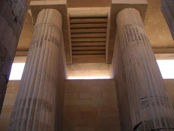 | Keywords: Saqqarah Djeser 03.jpg Colonnes du corridor du complexe funéraire de Djéser avec un plafond en fac similé de poutre de bois - Saqqarah - IIIe dynastie égyptienne 2007-03-30 own assumed Neithsabes Source Sebi fr Appareil Minolta DiMAGE Xt fr Date août 2005 Step pyramid complex of Djoser - entry hall |
