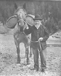 Keywords: Säumer Glaspass.jpg Josua Zinsli der letzte Säumer über den de Glaspass Rätisches Museum before 1880 unknown upload by Adrian Michael PD-old Glaspass Men at work Black and white photographic portraits of men Pack horses
