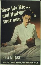 | Keywords: SAVE HIS LIFE AND FIND YOUR OWN. BE A NURSE - NARA - 513815.jpg Scope and content General notes 513815 Local identifier 44-PA-365 Office for Emergency Management Office of War Information Domestic Operations Branch Bureau of Special Services 03/09/1943 - 09/15/1945 Still Picture Records Section Special Media Archives Services Division NWCS-S National Archives at College Park 8601 Adelphi Road College Park MD 20740-6001 1941 - 1945 Record group Record Group 44 Records of the Office of Government Reports 1932 - 1947 Record group ARC 373 World War II Posters compiled 1942 - 1945 Series ARC 513498 File unit File unit ARC Variant control numbers NAIL Control Number NWDNS-44-PA-365 Other versions <gallery> File SAVE_HIS_LIFE_AND_FIND_YOUR_OWN _BE_A_NURSE_-_NARA_-_513815 tif tif File SAVE_HIS_LIFE_AND_FIND_YOUR_OWN _BE_A_NURSE_-_NARA_-_513815 jpg jpg </gallery> NARA-cooperation PD-USGov World War II posters from the United States |