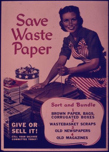 | Keywords: SAVE WASTE PAPER. SORT AND BUNDLE. GIVE IT OR SELL IT^ - NARA - 515345.tif Scope and content General notes 515345 Local identifier 44-PA-1677 Office for Emergency Management Office of War Information Domestic Operations Branch Bureau of Special Services 03/09/1943 - 09/15/1945 Still Picture Records Section Special Media Archives Services Division NWCS-S National Archives at College Park 8601 Adelphi Road College Park MD 20740-6001 1941 - 1945 Record group Record Group 44 Records of the Office of Government Reports 1932 - 1947 Record group ARC 373 World War II Posters compiled 1942 - 1945 Series ARC 513498 File unit File unit ARC Variant control numbers NAIL Control Number NWDNS-44-PA-1677 yes Other versions <gallery> File SAVE_WASTE_PAPER _SORT_AND_BUNDLE _GIVE_IT_OR_SELL_IT _-_NARA_-_515345 tif tif File SAVE_WASTE_PAPER _SORT_AND_BUNDLE _GIVE_IT_OR_SELL_IT _-_NARA_-_515345 jpg jpg </gallery> NARA-cooperation PD-USGov World War II posters from the United States NARA TIF images with categorized JPGs |