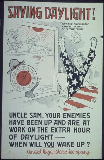 Keywords: "Saving Daylight^ "Set the clock ahead one hour and win the war" uncle sam, your enemies have been up and are at... - NARA - 512689.tif Scope and content General notes 512689 Local identifier 4-P-251 U S Food Administration Educational Division Advertising Section 01/15/1918 - 01/1919 Still Picture Records Section Special Media Archives Services Division NWCS-S National Archives at College Park 8601 Adelphi Road College Park MD 20740-6001 other date circa 1917 1919 Record group Record Group 4 Records of the U S Food Administration 1917 - 1920 Record group ARC 333 World War I Posters compiled 1917 - 1919 Series ARC 512439 File unit File unit ARC Variant control numbers NAIL Control Number NWDNS-4-P-251 yes Other versions <gallery> File Saving_Daylight _ Set_the_clock_ahead_one_hour_and_win_the_war _uncle_sam _your_enemies_have_been_up_and_are_at _-_NARA_-_512689 tif tif File Saving_Daylight _ Set_the_clock_ahead_one_hour_and_win_the_war _uncle_sam _your_enemies_have_been_up_and_are_at _-_NARA_-_512689 jpg jpg </gallery> NARA-cooperation PD-USGov World War I posters of the United States NARA TIF images with categorized JPGs |
