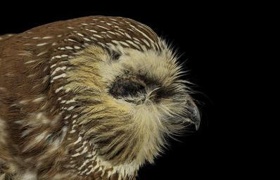 MAKE A MEME View Large Image Aegolius acadicus, the Norther Saw-whet owl. Look at the different feathers that occur around the eye and around the facial disk to increase their ability to hear, but not loose heat. This one unfortunately ran into a building in downtown ...