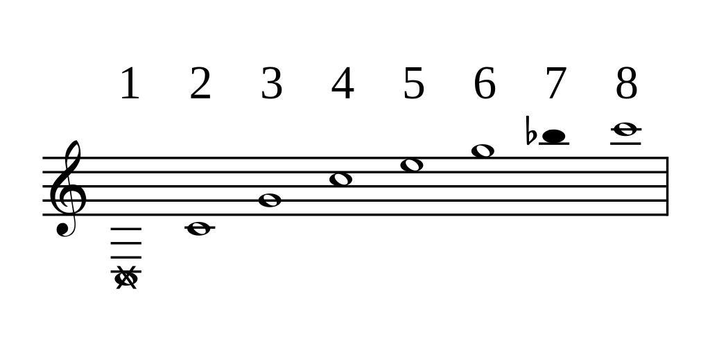 Keywords: Saxotrombaharmonicseries.svg en harmonic series of the saxotromba Own 2008-11-14 Erigena File Saxotrombaharmonics svg Saxotromba Harmonic series C instruments SVG musical notation