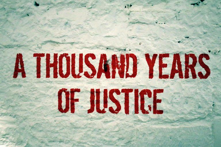 Keywords: saying font red wall prison statement justice white stone cell symbol criminal