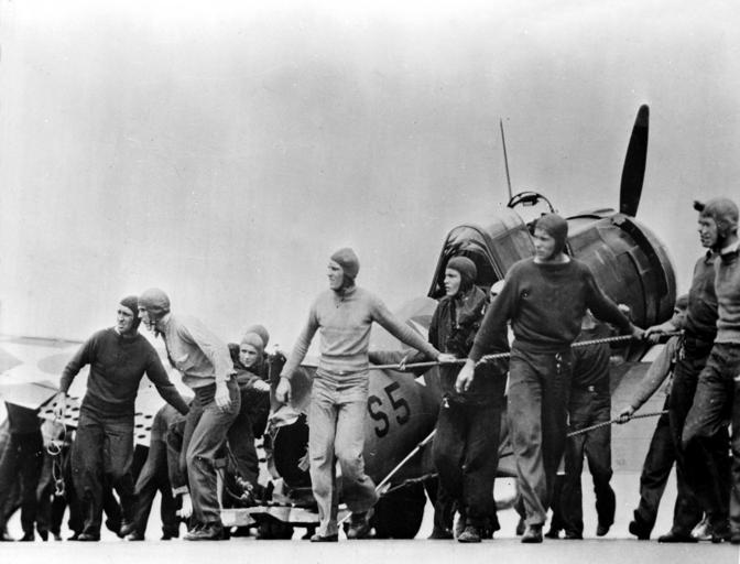 | Keywords: SBD with severed tail on USS Enterprise (CV-6) 1942.jpg A damaged U S Navy Douglas SBD-2 Dauntless of bombing squadron VB-6 on the flight deck of the aircraft carrier USS Enterprise CV-6 1 February 1942 Withdrawing after launching an attack against Kwajalein Enterprise was attacked by five Japanese Mitsubishi G4M Betty land-based bombers Manning the flexible rear machine gun on an SBD-2 of bombing squadron VB-6 AMM Bruno Gaido attempted to help fight off the attackers The wing of one of the disabled bombers severed the tail of Gaido's Dauntless spreading burning gasoline across the deck before crashing into the ocean For his heroism Gaido was promoted and assigned duty as an aircrewman Gaido was shot down with his pilot Ensign Frank W O'Flaherty on 4 June 1942 and later picked up by the Japanese destroyer Makigumo Circa 8-9 June both were murdered as they were tied to water-filled gasoline drums and dumped overboard LOC-image fsa 8e00760 1942-02-01 U S Navy PD-USGov-Military-Navy Douglas SBD Dauntless Aboard USS Enterprise CV-6 |