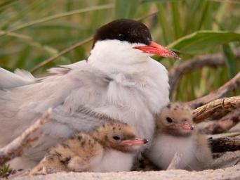 | Keywords: sbnms stellwagen bank seabirds common tern conservation nest chicks feathers hunting recovery habitat restoration protection usfws outdoor animal bird This common tern and its chicks were photographed not far from Stellwagen Bank National Marine Sanctuary, in Monomoy National Wildlife Refuge. In the late 19th and early 20th centuries, millions of North American birds like the common tern were killed for their feathers. Feather-hunters often captured adult birds sitting still on nests because they were an easy target. But there's good news: the Migratory Bird Treaty Act in combination with the creation of federally-protected areas like national marine sanctuaries, national parks, and national wildlife refuges, have protected critical food and nesting habitats for migratory birds from sea to shining sea. Photo Credit: USFWS This common tern and its chicks were photographed not far from Stellwagen Bank National Marine Sanctuary, in Monomoy National Wildlife Refuge. In the late 19th and early 20th centuries, millions of North American birds like the common tern were killed for their feathers. Feather-hunters often captured adult birds sitting still on nests because they were an easy target. But there's good news: the Migratory Bird Treaty Act in combination with the creation of federally-protected areas like national marine sanctuaries, national parks, and national wildlife refuges, have protected critical food and nesting habitats for migratory birds from sea to shining sea. Photo Credit: USFWS |
