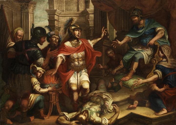 | Keywords: Scaevola legt die Hand ins Feuer.jpg Scaevola legt die Hand ins Feuer http //www hampel-auctions com/en/88-262/archive/96867/ Hampel Auctions century 17 Creator Italien oil on canvas 92 × 128 cm PD-old-100 Gaius Mucius Scaevola Ancient Rome in history paintings Porsenna 17th-century history paintings 17th-century oil on canvas paintings People with fire in art Sitting on stairs Turbans in art Feathered helmets in art Brown textiles in art Green cushions in art Images from Hampel Auctions 17th-century paintings location missing |