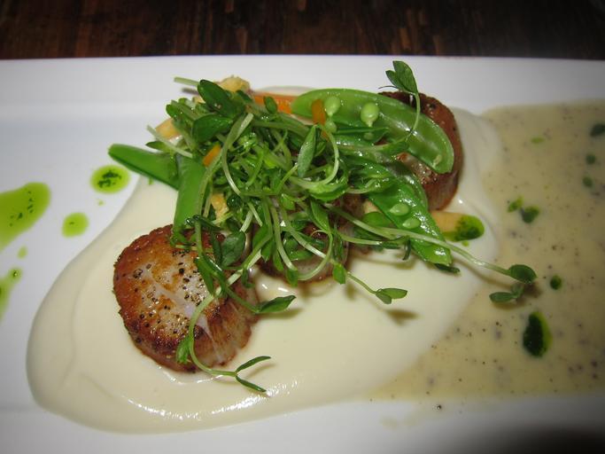 Keywords: scallops seafood di food meal dinner gourmet shellfish sea restaurant delicious cooked plate healthy sauce eat dish tasty fresh cuisine fish
