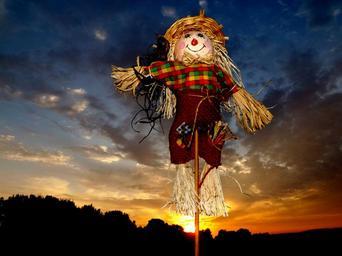 Keywords: scarecrow east cloud sky straw red