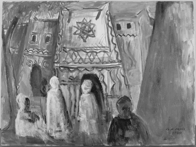 Keywords: "Scene, Northern Nigeria", 1964 - NARA - 558969.jpg Scope and content General notes Oil 558969 Local identifier H-HN-AA-9G-30 Harmon Foundation Okiki Godfrey A Nigeria Still Picture Records Section Special Media Archives Services Division NWCS-S National Archives at College Park 8601 Adelphi Road College Park MD 20740-6001 1964 Record group Collection H Harmon Foundation Collection 1922 - 1967 Record group ARC 862 Artworks by Negro Artists compiled 1922 - 1967 Series ARC 558790 File unit File unit ARC Variant control numbers NAIL Control Number NWDNS-200-HN-AA-9G-30<br /> NAIL Control Number NWDNS-H-HN-AA-9G-30<br /> Select List Identifier AFRICAN ART 178 Other versions <gallery> File Scene _Northern_Nigeria _1964_-_NARA_-_558969 tif tif </gallery> NARA-cooperation PD-USGov 20th-century oil paintings Art of Nigeria 1964 paintings Godfrey A Okiki Black and white reproductions of paintings in color |