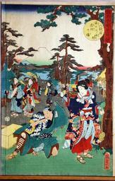 Keywords: Scene VIII- The Bridal Journey (5765903664).jpg en <b>Accession Number </b> 2009 123 <b>Display Artist </b> Utagawa Kunisada <b>Display Title </b> Scene VIII The Bridal Journey <b>Translation s </b> Michiyuki no ba Fuji no susuno <b>Series Title </b> Japanese Syllabary Copybook on The Treasurey of Loyal Retainers <b>Suite Name </b> Kanadehon Chushingura <b>Creation Date </b> 1859 <b>Medium </b> Woodblock <b>Height </b> 14 in <b>Width </b> 9 5/16 in <b>Display Dimensions </b> 14 in x 9 5/16 in 35 56 cm x 23 65 cm <b>Publisher </b> Yamadaya Shojiro <b>Credit Line </b> Gift of Captain George B Powell Jr JAGC USN <b>Label Copy </b> Konami was engaged to be married to the son of Yuranosuke the hero of the story The wedding has been called off however because her father Honz brought shame to the family by preventing Lord Enya from slaying his enemy Moronao In the midground of this print Konami and her mother are shown en route to Yuranosukes home to try to persuade him to allow the marriage to go forward Along the way they pass some of the iconic sights of Japan including Mount Fuji and the Miho pine forest The depressed Konami gazes at the scenery and a festive bridal procession in the foreground and sighs If things were as they used to be I should now be traveling in just such splendor and luxury for the great occasion of my life <b>Collection </b> <a href http //www sdmart org/art/our-collection/asian-art rel nofollow >The San Diego Museum of Art</a> 2009-07-15 15 50 09 https //www flickr com/photos/thesandiegomuseumofartcollection/5765903664/ Flickr en thesandiegomuseumofartcollection PD-old-100 Files from the San Diego Museum of Art to be checked |