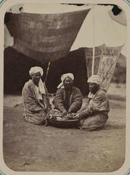| Keywords: Scenes at the Samarkand Square, or the Registan, and Its Market Types. Selling Baked Beets WDL11196.png Artwork ru Кун Александ Людвигович 1840 1888 гг fr Kun Aleksandr L 1840-1888 en Kun Aleksandr L 1840-1888 zh 亚历山大·L· ,1840-1888 年 pt Kun Aleksandr L 1840-1888 ar كُن، ألكسندر ل ، 1840-1888 es Kun Aleksandr L 1840-1888 ru Сцены на сама кандской площади Реджистан и ее база ные типы П одажа печеной свеклы fr Scènes sur la place de Samarcande ou Registan et ses types de marchand Vente de betteraves cuites en Scenes at the Samarkand Square or the Registan and Its Market Types Selling Baked Beets zh 撒马尔罕广 (或列吉斯 广 )上的 景及各类集市 贩卖烤 pt Cenas na praça de Samarcanda ou Registan e seus tipos de mercados Vendendo beterraba cozida ar مناظر لساحة سمرقند أو ريجستان وأنواع الأسواق بها بيع البنجر المطهو ru Эта фотог афия входит в этног афическую часть <em> Ту кестанского альбома </em><em></em> всесто оннего исследования Цент альной Азии п едп инятого после того как в 1860-х годах в егионе установилось господство Российской импе ии Альбом созданный по аспо яжению гене ала Константина Пет овича фон Кауфмана 1818 1882 годы пе вого гене ал-губе нато а оссийского Ту кестана состоит из четы ех частей в шести томах «Часть а хеологическая» два тома «Часть этног афическая» два тома «Часть п омысловая» один том и «Часть исто ическая» один том Основным составителем альбома был оссийский востоковед Александ Людвигович Кун аботавший совместно с иколаем Венедиктовичем Богаевским В альбоме п едставлено около 1200 фотог афий а также а хитекту ные планы аква ельные исунки и ка ты «Часть этног афическая» включает в себя 491отдельную фотог афию на 163 листах а фотог афиях изоб ажены п едставители азличных на одов егиона листы 1 33 повседневная жизнь и итуалы листы 34 91 а также виды де евень и го одов уличные то говцы и комме ческая деятельность листы 92 163 <br>База ы; Этног афические фотог афии; П одавцы п одовольственных това ов; Г упповые по т еты; Рынки; То говцы; Фотог афические исследования; По т етные фотог афии; Тю кские на оды fr Cette photographie est extraite de la partie ethnographique de l'<em>Album du Turkestan</em> étude visuelle complète de l'Asie centrale entreprise après que l'Empire russe prit le contrôle de la région dans les années 1860 Commandé par le général Konstantin Petrovich von Kaufman 1818 1882 premier gouverneur général du Turkestan russe l'album est composé de six volumes en quatre parties la partie archéologique deux volumes la partie ethnologique deux volumes la partie sur les métiers un volume et la partie historique un volume L'album fut essentiellement compilé par l'orientaliste russe Aleksandr L Kun assisté de Nikolai V Bogaevskii Il comporte près de 1200 photographies et inclut également des plans architecturaux des dessins à l'aquarelle et des cartes La partie ethnographique compte 491 photographies sur 163 planches montrant des individus des différentes peuplades de la région planches 1 à 33 des scènes de la vie quotidienne et des rites planches 34 à 91 ainsi que des vues de villages et de villes de vendeurs ambulants et d'activités commerciales planches 92 à 163 <br>Bazars; Photographies ethnographiques; Épiciers; Portraits de groupe; Marchés; Marchands; Inventaires photographiques; Portraits photographiques; Peuples turciques en This photograph is from the ethnographical part of <em>Turkestan Album</em><em> </em>a comprehensive visual survey of Central Asia undertaken after imperial Russia assumed control of the region in the 1860s Commissioned by General Konstantin Petrovich von Kaufman 1818 82 the first governor-general of Russian Turkestan the album is in four parts spanning six volumes Archaeological Part two volumes ; Ethnographic Part two volumes ; Trades Part one volume ; and Historical Part one volume The principal compiler was Russian Orientalist Aleksandr L Kun who was assisted by Nikolai V Bogaevskii The album contains some 1 200 photographs along with architectural plans watercolor drawings and maps The Ethnographic Part includes 491 individual photographs on 163 plates The photographs show individuals representing the different peoples of the region Plates 1 33 ; daily life and rituals Plates 34 91 ; and views of villages and cities street vendors and commercial activities Plates 92 163 <br>Bazaars; Ethnographic photographs; Food vendors; Group portraits; Markets; Merchants; Photographic surveys; Portrait photographs; Turkic peoples zh 这张照片出自<em> 其斯 相册 </em>的民族部分,该相册是俄罗斯 国 19 世纪 60 年代取得中亚控制 后, 手制 的 部针对该 区的综合 图像调查记录 相册由俄罗斯驻 其斯 (俄罗斯 国中亚属 的名称)首任 康斯 丁·彼得罗维奇·凡· 夫曼(Konstantin Petrovich von Kaufman,1818 82 年)将