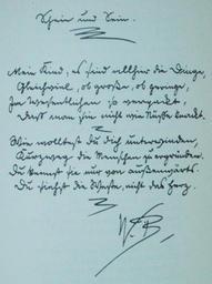 | Keywords: Schein und Sein.jpg s de Schein und Sein Ein Wilhelm-Busch-Text in handschriftlicher deutscher Kurrentschrift A text of Wilhelm Busch in German Kurrent 和心 威廉·布施 < 1909 Creator Wilhelm Busch German Wikipedia other fields 1 Transcription inscription Schein und Sein Mein Kind es ſind allhier die Dinge <br> Gleichviel ob große ob geringe <br> Im Weſentlichen ſo verpackt <br> Daſs man ſie nicht wie Nüſse knackt <br> Wie wollteſt du dich unterwinden <br> Kurzweg die Menſchen zu ergründen <br> Du kennſt ſie nur von außenwärts <br> Du ſiehſt die Weſte nicht das Herz <br> W B de other fields Translation Appearance and Being My child there are all things<br /> regardless if major or minor<br /> for the most part packaged thus<br /> that one cannot crack them like nuts in German cracking a nut can refer to solving a problem <br /> How would you take on such a thing<br /> to quickly fathom people<br /> You only know them from the outside<br /> you see the vest not the heart <br /> 和心 小孩子, 很多事,<br /> 无论大或小,<br /> 如 子打不 <br /> 它们的硬皮 <br /> 你 么要<br /> 快快认识人?<br /> 你只见他们外边<br /> 你知衫不知心 PD-old Original upload log 23 56 15 Jan 2005 Mijobe Diskussion Beiträge 582 x 780 69 422 Byte German Kurrent Poems in German Wilhelm Busch Long s |