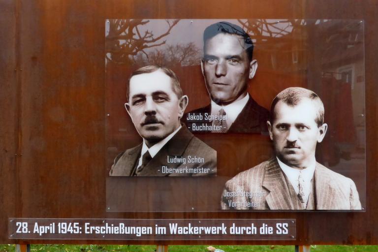 Keywords: ScheipelSchönStegmair 3.jpeg de Teil des Mahnmals in Burghausen für Jakob Scheipel Ludwig Schön und Josef Stegmair die am 1945-04-28 von der SS ermordet wurden eo Parto de la memoriga muro en Burghausen DE pri Jakob Scheipel Ludwig Schön kaj Josef Stegmair murditaj je 1945-04-28 de SS self-photographed Aisano 2014 48 9 59 2 N 12 49 54 8 E heading NNW Members of the German Resistance Victims of National Socialism 1945 deaths Cc-zero |
