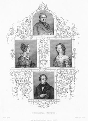 | Keywords: Schillers Kinder.jpg Friedrich Schillers Kinder laut Bildaufschrift Karl Freiherr Karl Friedrich Ludwig von Schiller Karoline tatsächlich Caroline Henriette Luise von Schiller Emilie Emilie Friederike Henriette von Schiller und Ernst Ernst Friedrich Wilhelm von Schiller Beschreibung laut Quelle Schiller's Kinder Carl Caroline Emilie Ernst V Katzler direxit Leopold Beyer sculpsit Druck aus der k k Hof- und Staats-Druckerei in Wien 1859 - Stahlstich in Schmuckrahmen 25 3 x 17 8 cm http //www goethezeitportal de/index php id 2482 Goethezeitportal mit Verweis auf Meyers Großes Konversations-Lexikon 6 Aufl 1905-1909; Bd 17 S 801; Digitale Bibliothek 100 S 175406 f ; Auszug http //www goethezeitportal de/index php id 2482 Goethezeitportal Druck aus dem Jahr 1859 Leopold Beyer Beyer Leopold reproduzierender Kupferstecher in Wien geb 1784 gest nach 1870 Schüler von Schmutzer stach meist nach zeitgenössischen Meistern Führich Schwind u a Thieme / Becker http //www goethezeitportal de/index php id 2482 Goethezeitportal author died more than 70 years ago Image Karl Friedrich Ludwig von Schiller jpg cropped and slightly rotated image of Freiherr Karl Friedrich Ludwig von Schiller only PD-art People related to Friedrich Schiller Schiller family |