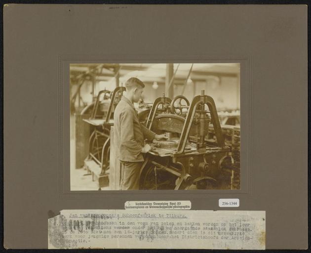 | Keywords: nationaal archief nationaal archief nationaalarchief black & white photo blackwhitephoto manual labor manuallabor old machinery oldmachinery machines used by hand machinesusedbyhand male man machinery worker imprenta trabajador de imprenta trabajadordeimprenta periodico man working manworking machine Beschrijving: Stanzerij. Stansmessen in de vorm van zolen en hakken worden op het leer gezet en vervolgens onder het op en neergaande stansblok gebracht. Op de foto ziet men een 16-jarige jongen. Sindsdien is dit gevaarlijke werk voor jeugdige personen verboden door het Districtshoofd der Arbeidsinspectie Datum: Circa 1919 Vervaardiger: Fotograaf onbekend Formaat: 12 x 16.5 cm Bestanddeelnummer: 2.24.03_2252_256-1344 Fotocollectie: Arbeidsinspectie Auteursrechten: Nationaal Archief Voor meer informatie over het Nationaal Archief: www.nationaalarchief.nl Voor meer foto's uit deze en andere collecties, bezoek onze Beeldbank: beeldbank.nationaalarchief.nl/ Beschrijving: Stanzerij. Stansmessen in de vorm van zolen en hakken worden op het leer gezet en vervolgens onder het op en neergaande stansblok gebracht. Op de foto ziet men een 16-jarige jongen. Sindsdien is dit gevaarlijke werk voor jeugdige personen verboden door het Districtshoofd der Arbeidsinspectie Datum: Circa 1919 Vervaardiger: Fotograaf onbekend Formaat: 12 x 16.5 cm Bestanddeelnummer: 2.24.03_2252_256-1344 Fotocollectie: Arbeidsinspectie Auteursrechten: Nationaal Archief Voor meer informatie over het Nationaal Archief: www.nationaalarchief.nl Voor meer foto's uit deze en andere collecties, bezoek onze Beeldbank: beeldbank.nationaalarchief.nl/ |
