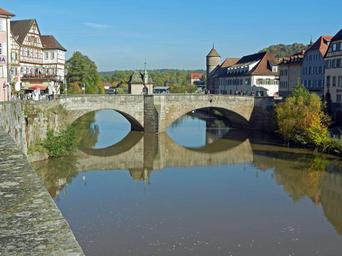 Keywords: schwäbisch hall middle ages fachwerkhäuser historically city view old town truss hall river kocher bridge southern germany town on the river fachwerkhaus arch bridge stone mirroring reflection sunny partly cloudy golden october arch reflect salt salt city building