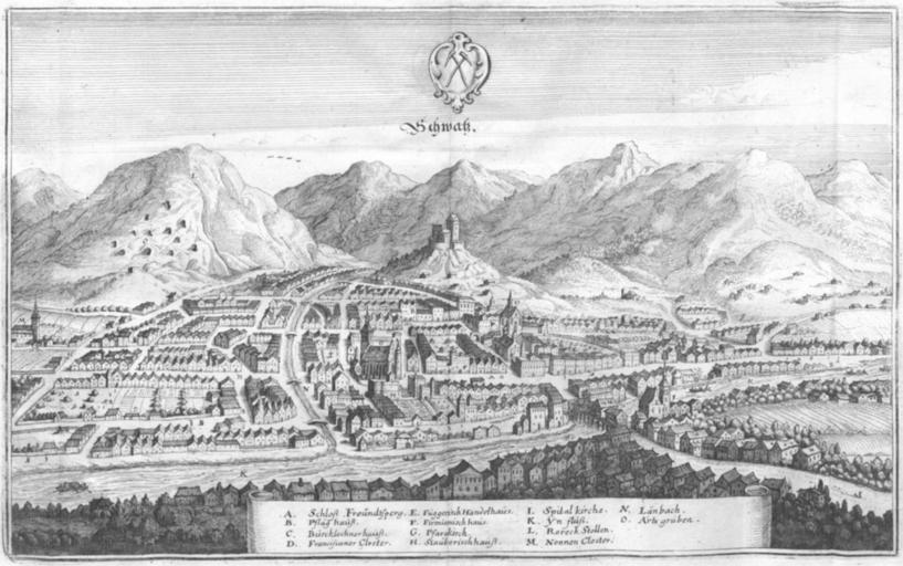 | Keywords: Schwatz (Merian).jpg Series title Topographia Germaniae 10 3 1679 Frankfurt am Main Digitalisat der UB Düsseldorf http //digital ub uni-duesseldorf de/content/titleinfo/189687 Topographia Austriacarum Merian 007 jpg PD-old-100-1923 Other versions s de Topographia Provinciarum Austriacarum Engravings of Topographia Austriacarum Austria in art by Matthäus Merian Schwaz Tyrol Engravings of Tyrol state | ||||