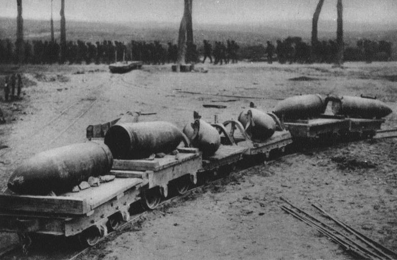 Keywords: Schwere Geschosse auf Rollwagen.jpg Schwere Geschosse auf Rollwagen in einer Geschützstellung an der Strasse Amiens-Albert 28 August 1918 Der Weltkrieg im Bild 1918-08-28 author PD-old Der Weltkrieg im Bild World War I artillery ammunition Narrow gauge rail transport World War I in August 1918 |