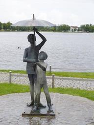Keywords: schwerin mecklenburg western pomerania state capital park monument statue sculpture rain screen protect umbrella lake pond child space
