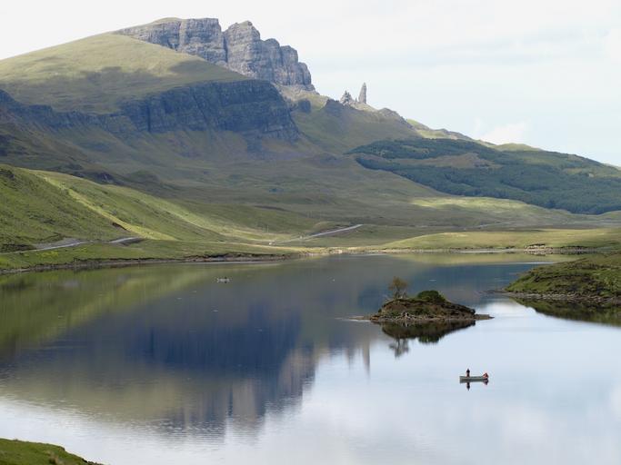 Keywords: scotland skye isle of skye rock lake water nature landscape highlands and islands mountain green stones storr loch leathan mirroring angler pinnacle trotternish